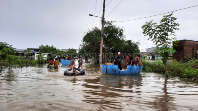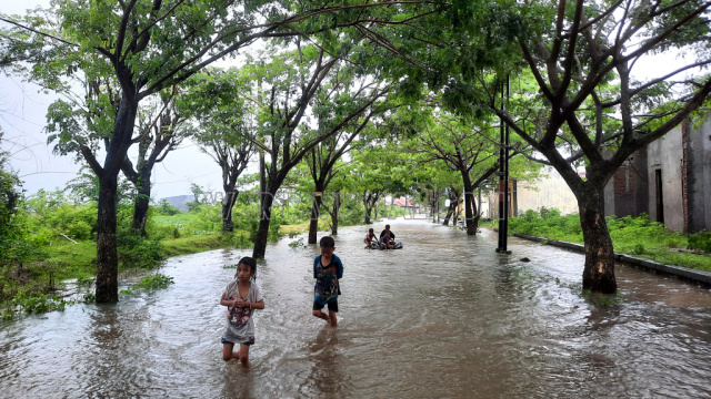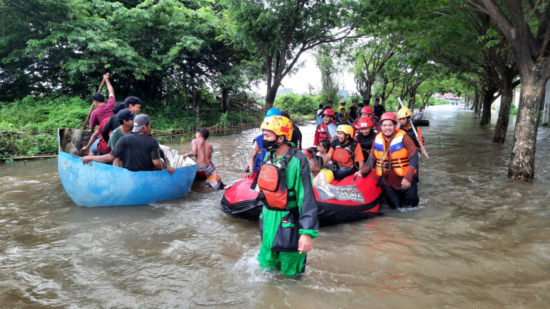 Banjir merendam di kawasan Perumnas Antang Blok 10, Kecamatan Manggala, Makassar, Sulawesi Selatan, Rabu (8/12/2021). Ratusan rumah di daerah itu terendam banjir akibat curah hujan yang tinggi dan sebagian warga sudah mulai mengungsi.