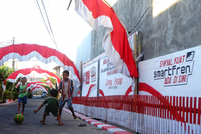 Memeriahkan peringatan HUT ke-78 Kemerdekaan Indonesia, Smartfren Regional Sulawesi turut serta berpartisipasi untuk bersama-sama semarakkan semangat kebangsaan melalui rangkaian kegiatan yang terdiri dari Branding Gapura/lorong warga dan Perlombaan 17an warga dengan tema “Terbang Lebih Tinggi 100% Untuk Indonesia”. Dukungan ini tersebar di beberapa titik di Sulawesi Selatan, salah satu diantaranya, di Kelurahan Bangkala, Kecamatan Manggala, Kota Makassar, Sabtu (19/2023). Dukungan yang diberikan ini sebagai bentuk apresiasi terhadap warga lokal yang telah menjadi pelanggan setia Smartfren dan aktif dalam melaksanakan kegiatan positif di area lingkungan tempat tinggal mereka, kegiatan ini juga merupakan wadah untuk menjalin silaturahmi antar warga lokal dengan Smartfren. (Wartavisual.com / Andi Muhammad Syafrizal)