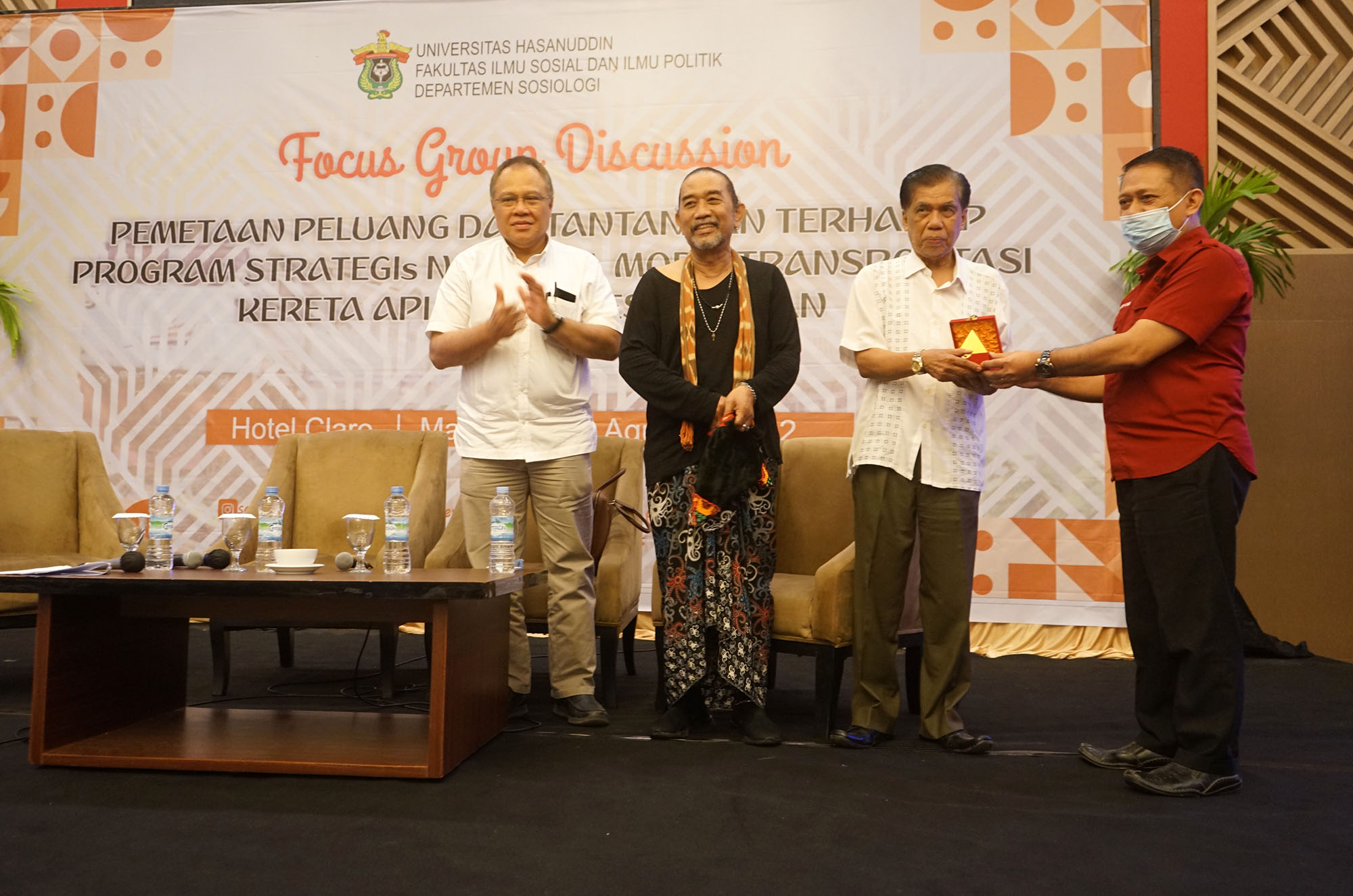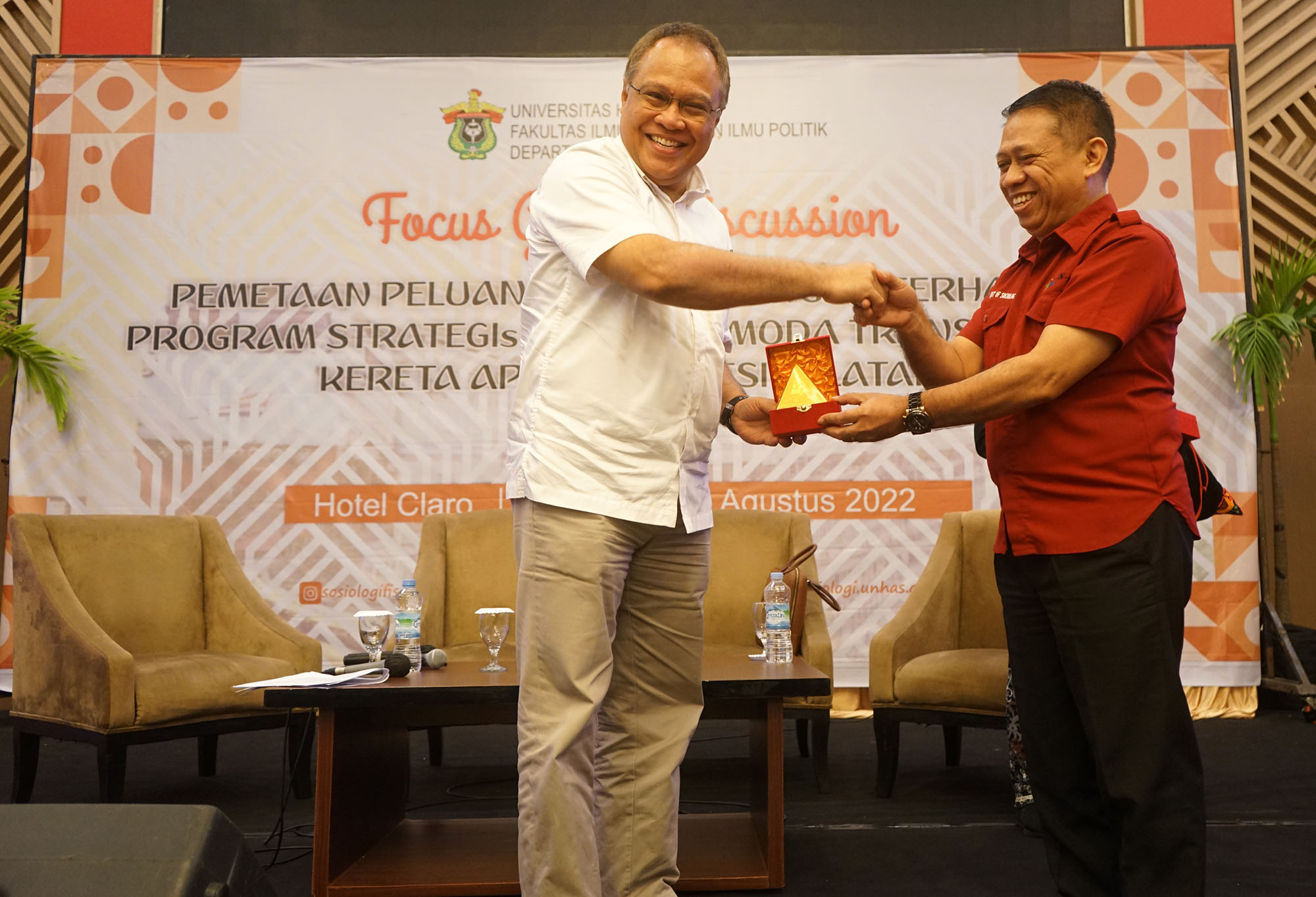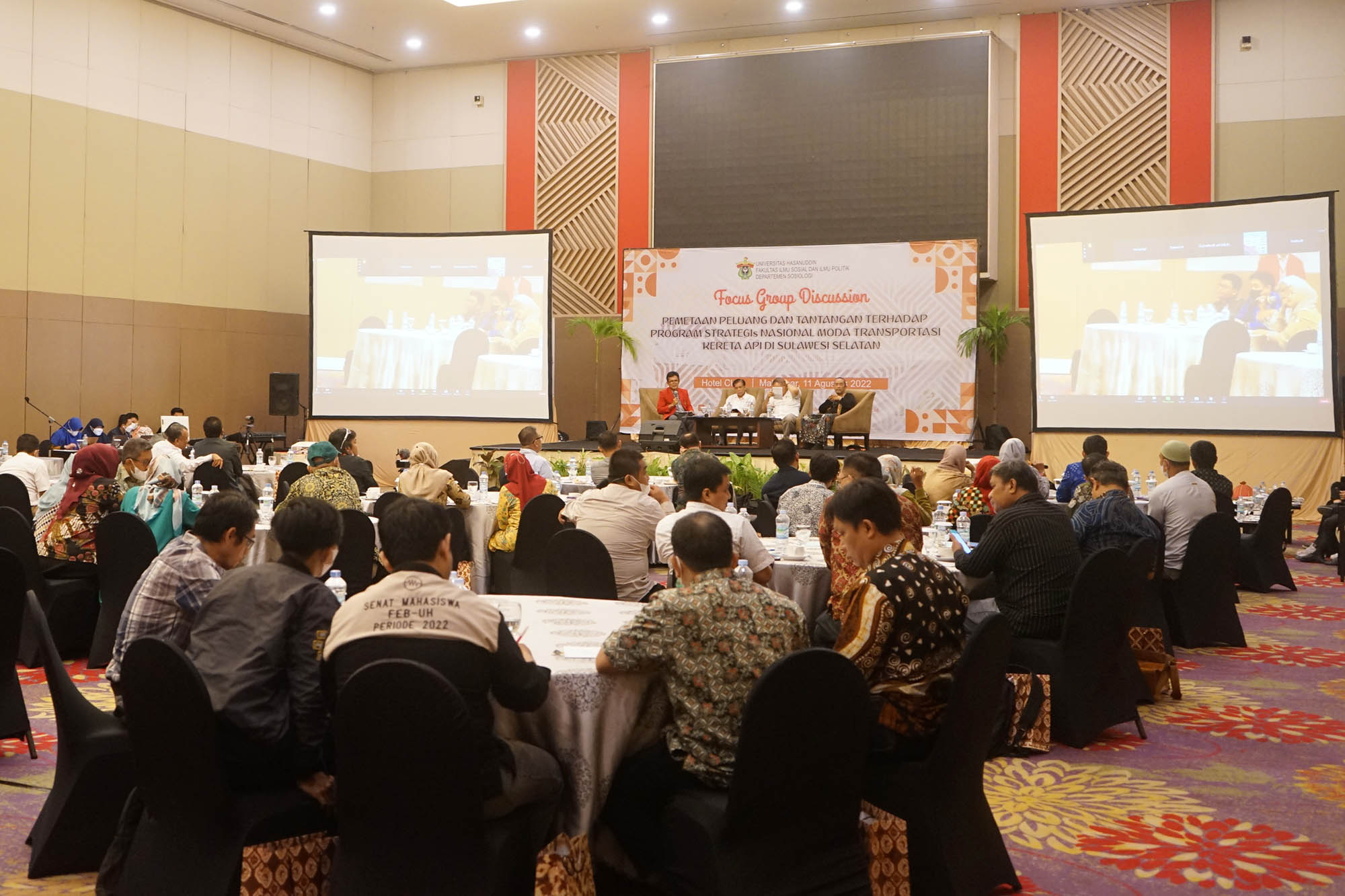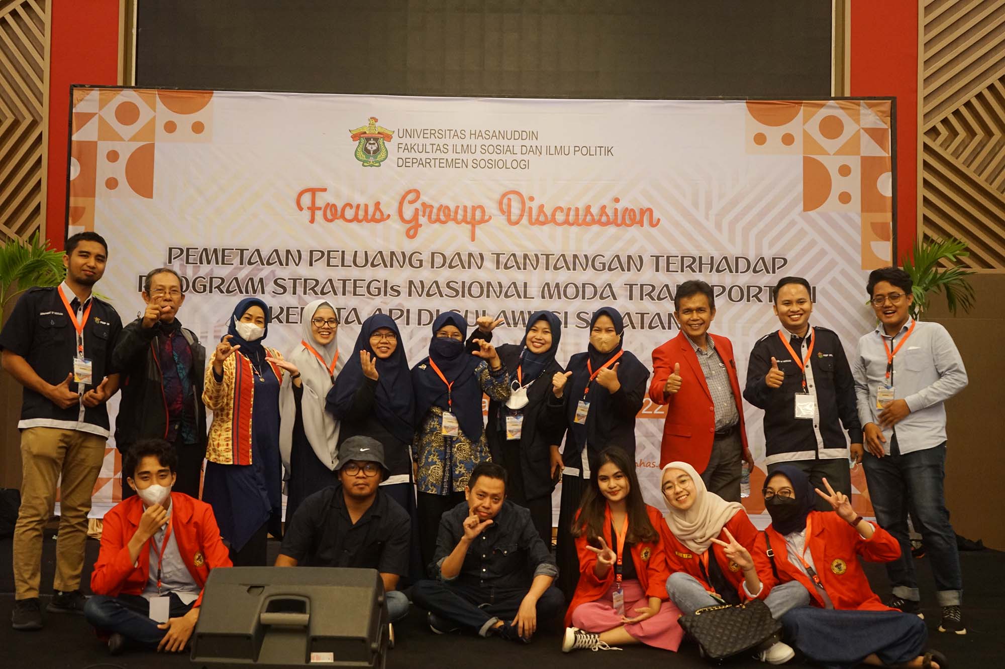 Departemen Sosiologi, Fakultas Ilmu Sosial dan Ilmu Politik (FISIP) Universitas Hasanuddin diskusi proyek kereta api di Sulawesi Selatan (Sulsel). Focus Grup Discussion Sosiolog Unhas ini digelar di Sandeq Ballroom, Hotel Claro, Jl AP Pettarani, Makassar, Kamis (11/8/2022). Tema diskusinya “Pemetaan Peluang dan Tantangan Terhadap Program Strategis Nasional Moda Transportasi Kereta Api di Sulawesi Selatan”. Sebagai keynote speaker hadir Dekan FISIP Unhas Phil Sukri dan Plt Dirjen Perkeretaapian (KA) RI Zulmafendi. Keduanya membahas tantangan mewujudkan program strategi nasional moda transportasi publik di Sulawesi Selatan.