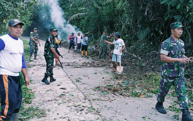 Gotong royong warga bersama aparat TNI di Desa Bonto, Kecamaran Malua, Kabupaten Enrekang, Sulsel, Jumat (9/2/2024). Kegiatan ini dilakukan dalam rangka pencegahan wabah demam berdarah, salah satunya dengan melakukan kegiatan gotong royong membersihkan lingkungan rumah terutama pembersihan saluran air. (Foto: WartaVisual/Jamil Jufri)